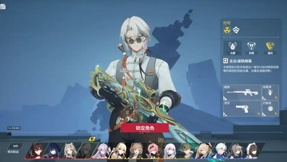 令的主武器是连狙步枪,一旦施展的时候可以制造烟墙,觉醒以后这个技能就会被强化,而队友靠近这个墙的时候可以直接看到墙后面的敌人。当他施展大招之后可以刷新q技能的冷却时间,并且能够抵挡子弹。