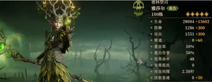 如果说有人能在龙息神寂中创造持续而致命的毒伤伤害,那么密林祭司·雅莎尔必定是榜单上的常客。作为一名拥有极高魔力的德鲁伊,她不仅能通过战技“刚愎”对敌人造成三次毒伤,还能通过强大的被动技能将敌人一举击破。她的“毒伤”效果,可以让敌人每一次受到攻击时都感到致命威胁,毒伤层数越高,造成的伤害也会更加惊人。