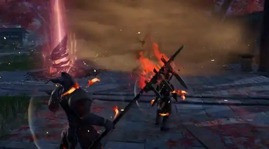 接下来要聊的,是岳山的奥义技能,这才是他真正威慑敌人的利器。每一个奥义形态都让他成为战场上的主宰。岳山的V1奥义让他化身为神将,瞬间恢复满血并且获得更强的机动性。此时,岳山的攻击力和控制能力都得到了极大的提升,长按鼠标左键或右键,可以施展专属的蓄力攻击。敌人在面对岳山的“处决”技能时,根本没法反抗——一下子就被击倒,瞬间打出伤害,简直是敌人的噩梦。而V2版本的奥义技能,增加了回复功能。岳山在变身之后,不仅体力回满,还能通过按下F键攻击周围敌人,并且大量回复体力。