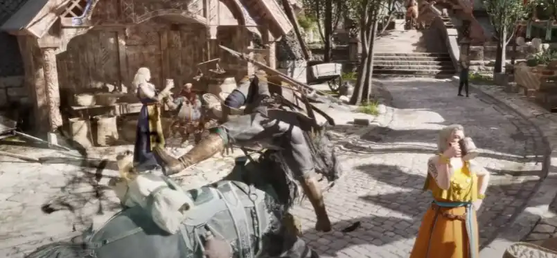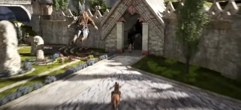 就目前来看,这个马匹似乎是一个系统,是较早期就可以解锁的,解锁后玩家可以直接召唤出来,而且从视频演示来看,甚至可以在移动的过程中直接召唤,然后翻身上马,一气呵成,非常帅气。