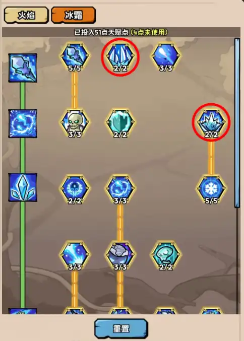 此外冰环也是一个很厉害的控制招式,能提供群攻伤害还可以帮助冻住怪物的同时减少自身伤害,打boss时也可以相应进行调整,最后冰法的加点方面,可以如下图,优先点红框内的。