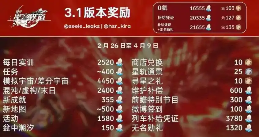 当然了,除了新角色和新buff外,3.1版本也有很多值得参与的活动,特别是晨昏卷隐活动,它将在2月14日上线。这次活动的奖励可是超级丰厚的,包括500星琼和大量的遗器残骸,简直是氪金党的福音。如果你还在犹豫要不要参加,只能说赶紧的,错过了可就要等很久。
