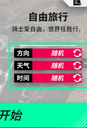 另外还可以看到一个自由旅行选项,该选项中玩家可以选择该区域的方向、天气以及时间,然后生成地图,是的没错可以生成一个随机的城市地图,之后可以自由在地图中穿梭领略该地图的风光。
