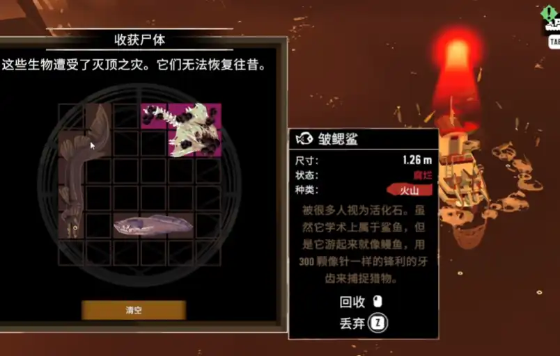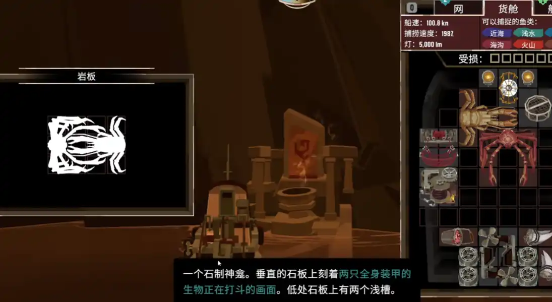 最后一个祭坛需要2条畸变鱼,用枯萎技能就有很大几率能捕到畸变鱼,另一条畸变鱼则要钓或者用渔网捕。火山这里没有岩板任务,完成最后一个祭坛的烈火获取就会自动给到一个高速钓具。