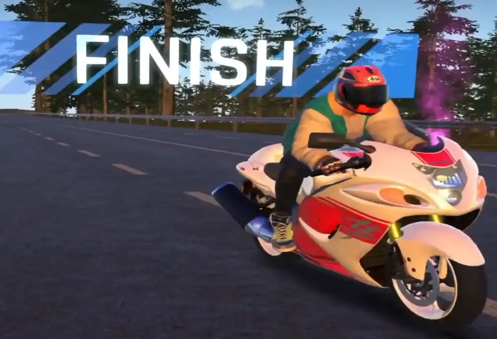 这款游戏是一款以摩托竞速为主的游戏,在游戏里面咱们需要驾驶自己的摩托来和其他的人进行竞速。咱们在和别人竞速的时候如果进入到前几名并且通过终点的话便可以获取到胜利的奖励。