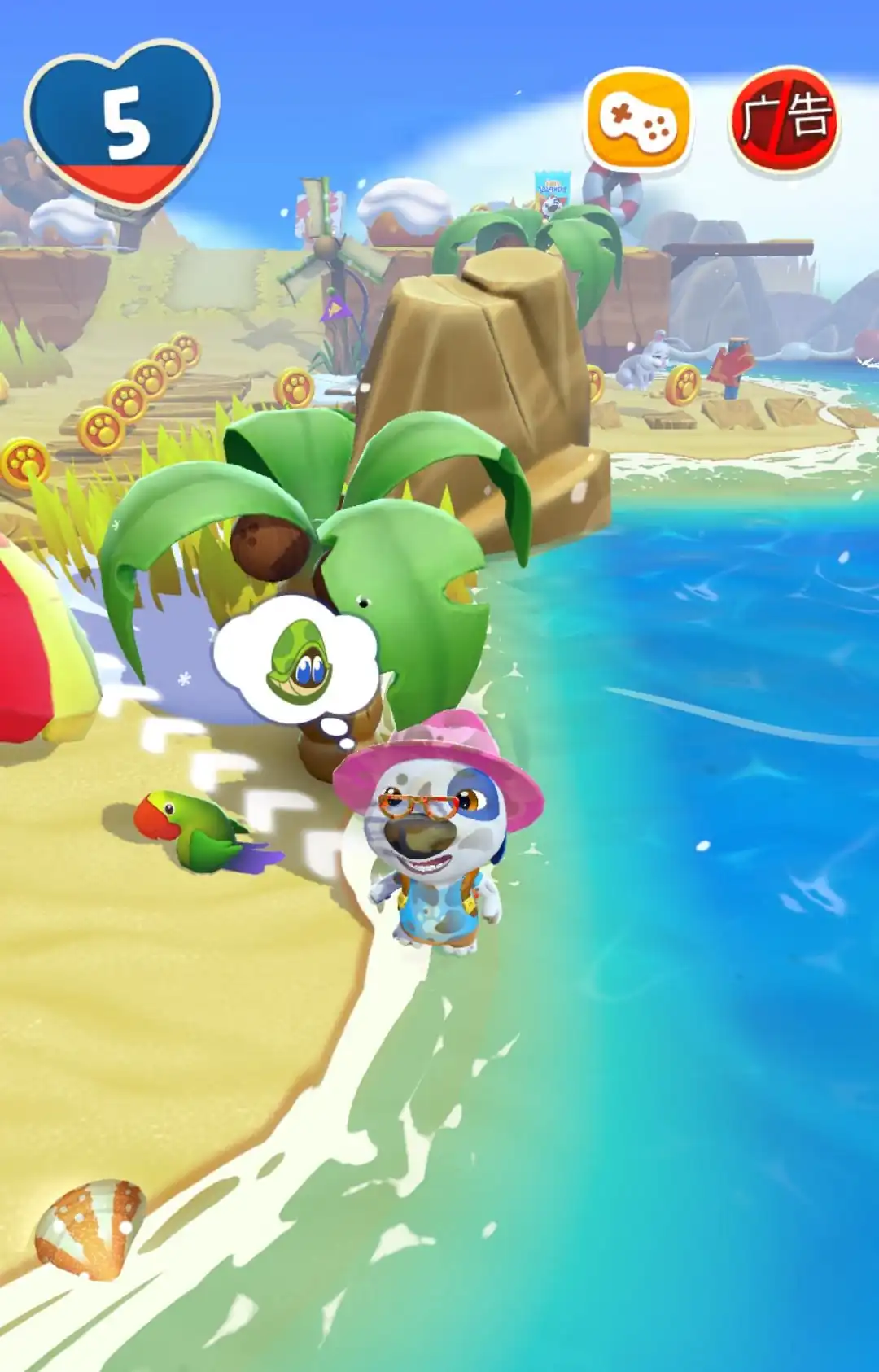 而且可以享受的美食类型有了更多样化的选择,各种搞笑的模仿音色也可以通过消耗免费的金币来解锁,这样能够感受更自由的云养宠物内容。更重要的是汉克狗并不仅局限于在小木屋内,而是增加了很多可以探索的区域,首先解锁的海岛地图就有非常丰富的内容,其中还隐藏着守株待兔等等很多小游戏,让我们可以和汉克狗一起捕捉动物,获取时装。