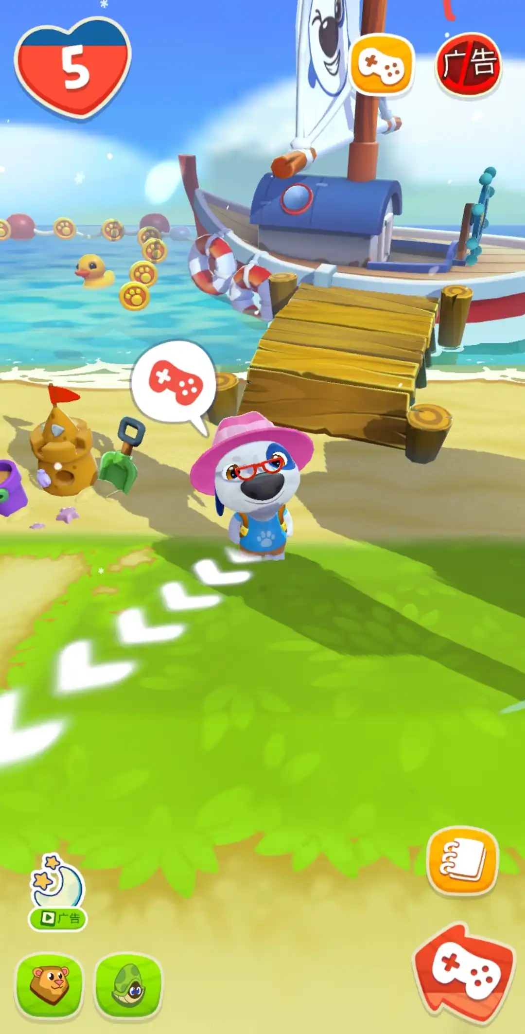 除了经营树屋之外,就是要探索岛屿,通过走廊进入世界地图,收集水果,木材以及贝壳等等,和岛上的动物完成各种小游戏互动来解锁友情特殊道具,通过游泳,寻宝以及钓鱼等等多种场景互动还能够解锁更多的隐藏奖励,这样加快金币的赚取速度。新手玩家一定要注意基础玩法中先照顾饥饿卫生管理以及活力值再外出探索,前期可以多玩卧室小游戏来提升里面的工具等级。