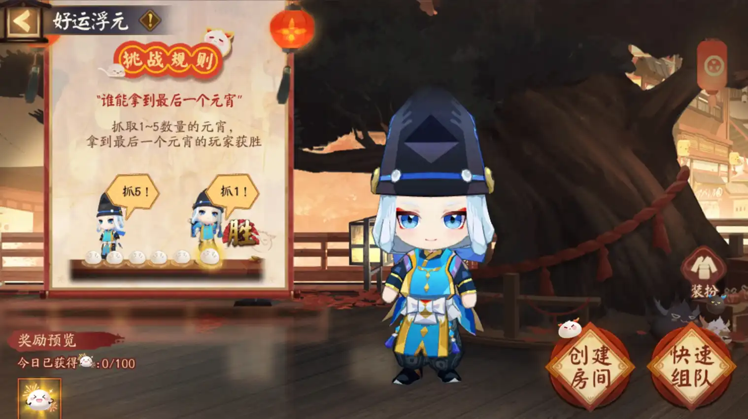 活动具体有切磋手艺、好运浮元、华彩小试这三种不同的玩法,切磋手艺需要大家消耗自己的体力在限定的事件内打败茨木呱就算挑战成功,好运浮元需要大家在每局内抓取1到5数量的元宵,谁能拿到最后一个元宵,谁就能获得最终胜利。
