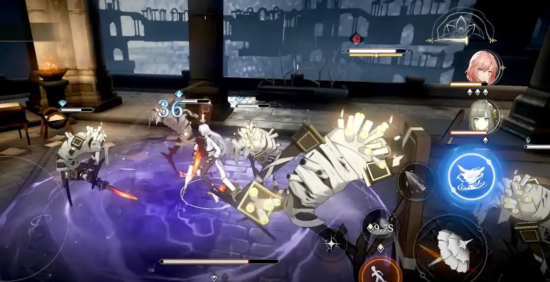 核心玩法以组建最多三人的小队进行即时战斗,玩家可以自由切换角色并运用各自独特的技能进行连招,打击感较强且操作上有一定深度,需要手法,并不是滚键盘就可以的。游戏没有自律战斗,长线推图的时候还是会有点乏味的,主线有好几个大章节,每章节里有十几个小关。