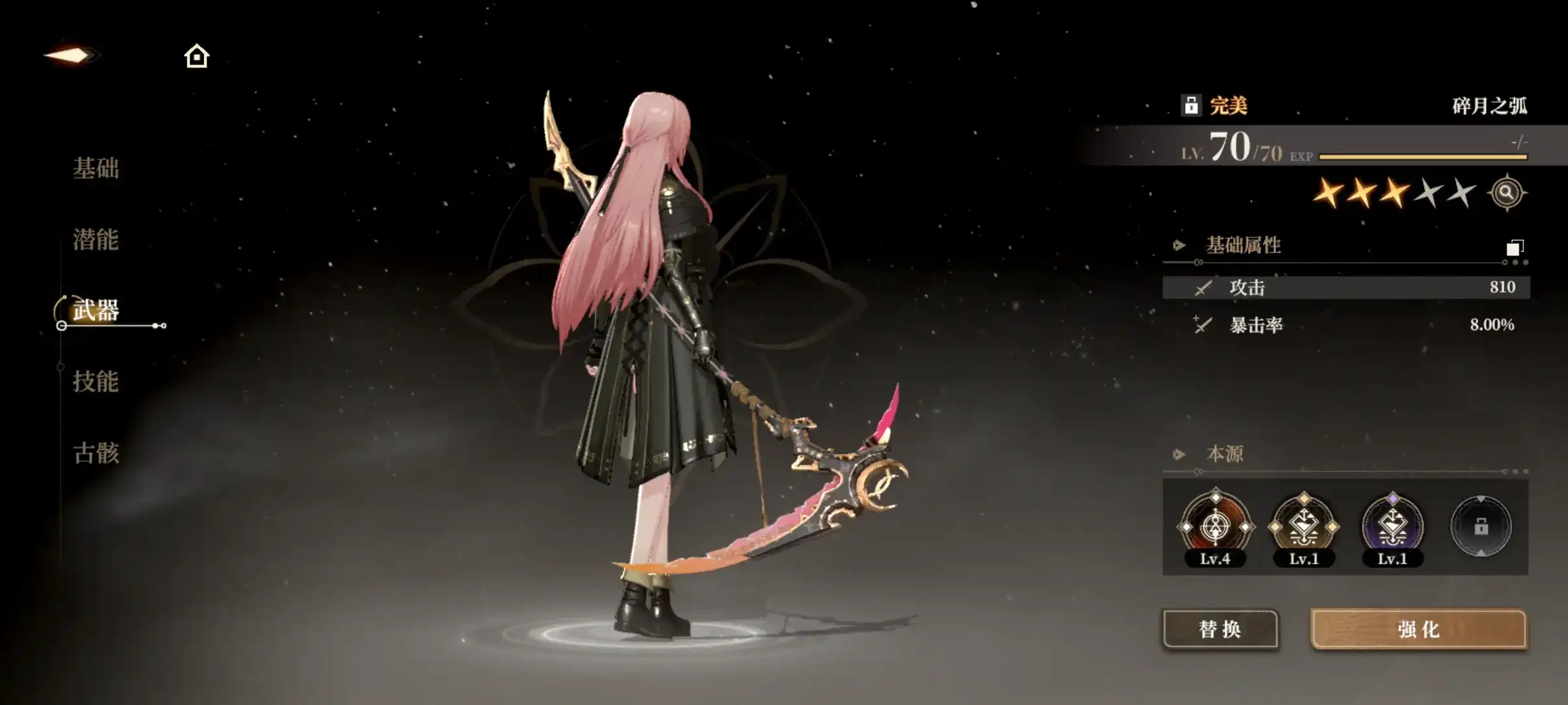 武器8:“沃月”,专属本源”孤轮连舞”,能让”逐月圆舞”获得160%伤害增幅,且在最后一道附加3次10%的额外伤害。