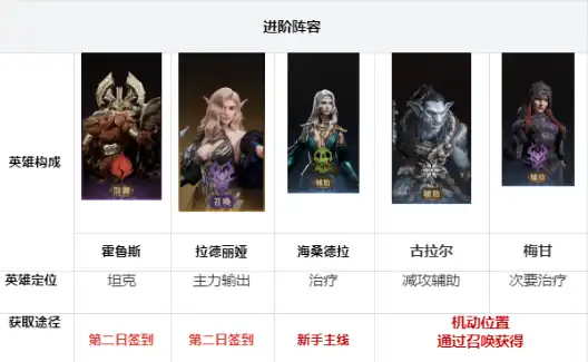 这一个阵容中,瓦斯卡可以召唤大量的召唤物,而且还可以造成巨额的伤害。伊西塔瑞安能发挥稳定的群体输出,还可以召唤强大的召唤物。以莱娅能有效辅助提升团队的输出能力,并且还可以强化乙方的实力。海桑德拉在一开始是一个不容或缺的奶妈角色,在团队中就可以有效提升群体的治疗效果。主角的元素还有技能,全部都可以在英雄的界面任意的切换。