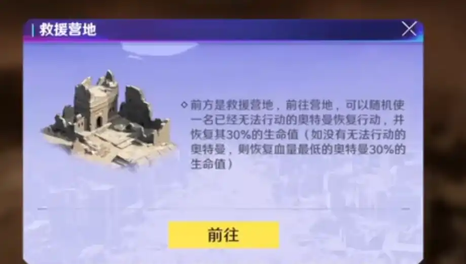 在某些关卡里还会有特殊的救援营地,营地可以随机让一位血量为0,无法行动的角色重新恢复行动,并恢复30%的生命值,如果没有已死亡角色,也可以帮助回复一定血量,大家看到后一定要记得前往使用。