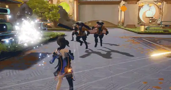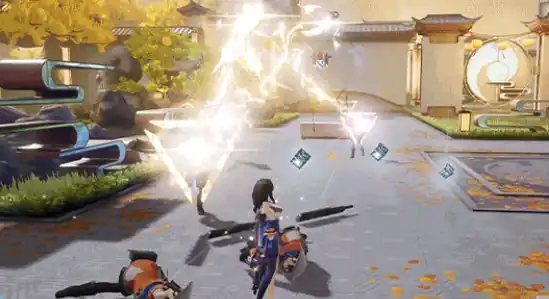 肴夜天光是一位冲锋枪电击类型辅助角色,她的常规技会发射出“急躁电工”冲向附近的敌人并爆炸,形成范围伤害后还能回复自身的爆发能量,如果处于“暮闪领域”范围内使用这个招式,就会一次性发射出多个“急躁电工”连续朝目标方向射击,每一个命中都会形成范围伤害并击飞目标,建议大家实际使用时善于利用这个加强效果,击飞目标打出控制效果。