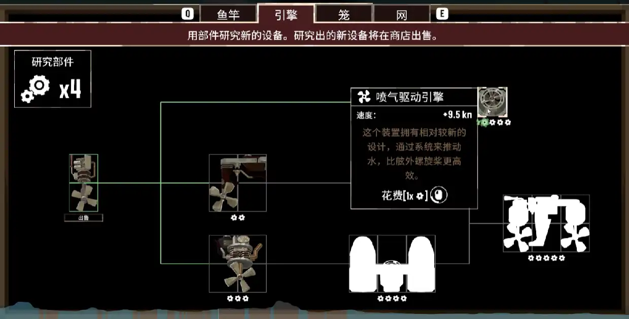 如果玩家不追求速度的话,倒是可以使用一格的小引擎,这个引擎的价格特别低,耐用性也比较强,如果说船体发生了损坏,它还能够让船只继续航行。