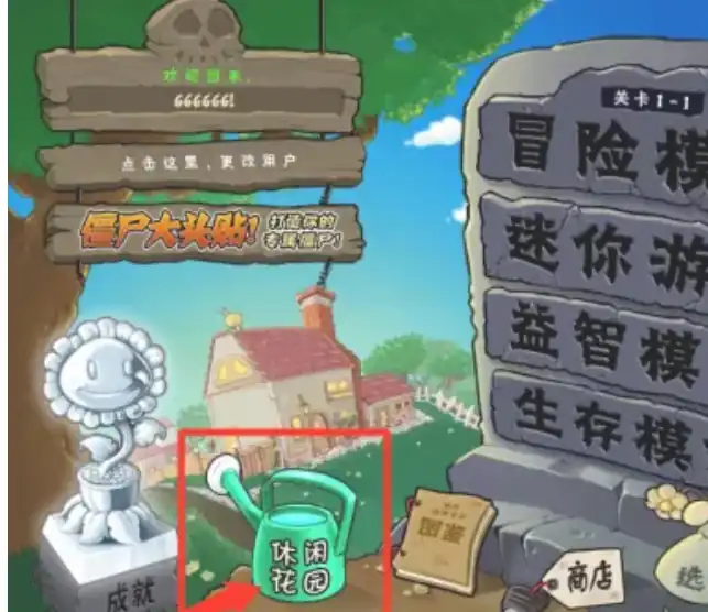 在植物大战僵尸抽卡版中出售植物需要玩家先进入到游戏里面,点击开始游戏会进入到登录界面,在登陆界面中找到休闲花园这个选项。