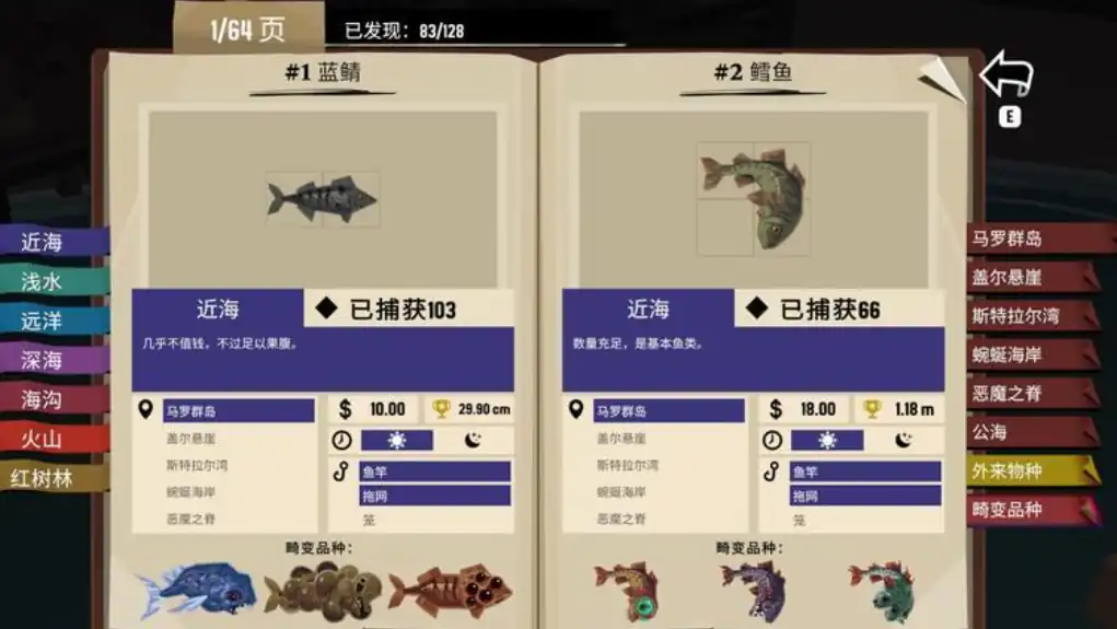 在这款游戏中出了渔网,还可以用鱼竿或者蟹笼去捕鱼,但是鱼竿只可以捕捉一些特定的鱼类,蟹笼只能捕捉甲壳类的海鲜。但是渔网就不一样了,一次性可以捕捉不同的鱼类和甲壳类生物,所以渔网的实用性还是要强一些。
