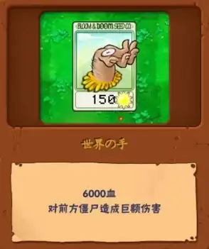 世界之手:初始就有6000血的卡牌,可以对前方僵尸造成巨额伤害,是三张炼狱卡当中最弱的一张卡,但是相比其他品质的卡依旧是有吊打能力的,属于近战爆发的植物,可以无视大规模的僵尸潮,效果可以去单挑僵尸王博士。