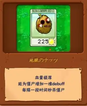 地域坚果:是所有炼狱卡当中最强的一个,血量极厚,能为僵尸增加一堆debuff,每隔一段时间秒杀僵尸,高达两万四的血量,让本身就是防御型的坚果有更强的前排抵御僵尸能力,但是弱点就是遇到巨人僵尸握锤子的话,有几率在几次锤击下被锤扁,所以这一点大家要注意在有此类僵尸进攻时进行其他防御植物的安排,碾压类攻击就是它比较弱的地方。