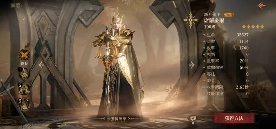 然后是飞洛希尔,这个角色不仅在冰元素的英雄里面尤为出色,甚至还有一定的恢复能力,技能效果是可以直接恢复队列当中所有角色的生命数值,不且不一般的是还具备诅咒敌方角色的能力,通过他的大招技能,可以在全屏范围内造成冰冻寒霜伤害,并削减敌方的所有增益效果,这属于是一个冰系当中解控能力比较强的角色了。
