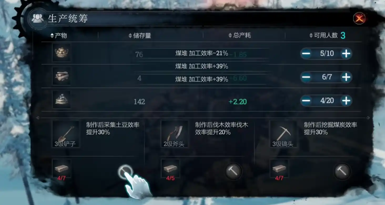 但由于游戏的设定是冰封末日,随着时间的推移,玩家可供开采的森林区域也会逐渐减少,想要获取树脂,只有前期开发更多的资源设施,才有概率能够获得。