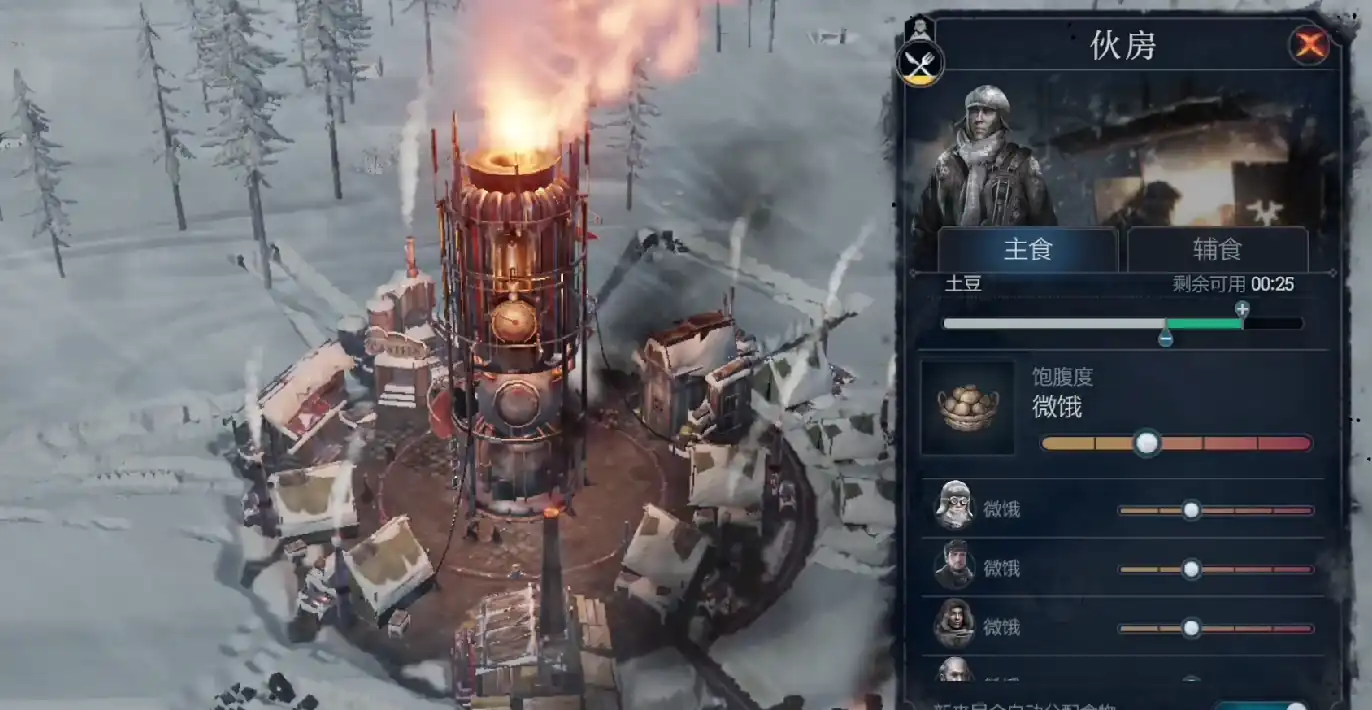 第二种基础建设是游戏当中的食物建设,食物建设能够为玩家提供大量的食物储备,保证居民不会受到饥饿的困扰,食物补给就包括有食堂猎人小屋、温室、工业温室等等,在这些设施当中,玩家可以通过循环建造的方式,获得基础的食物物资。