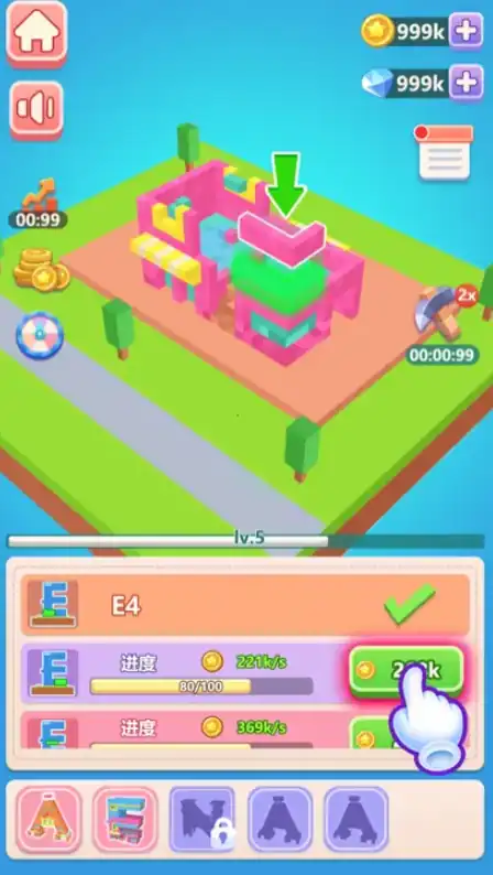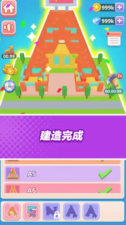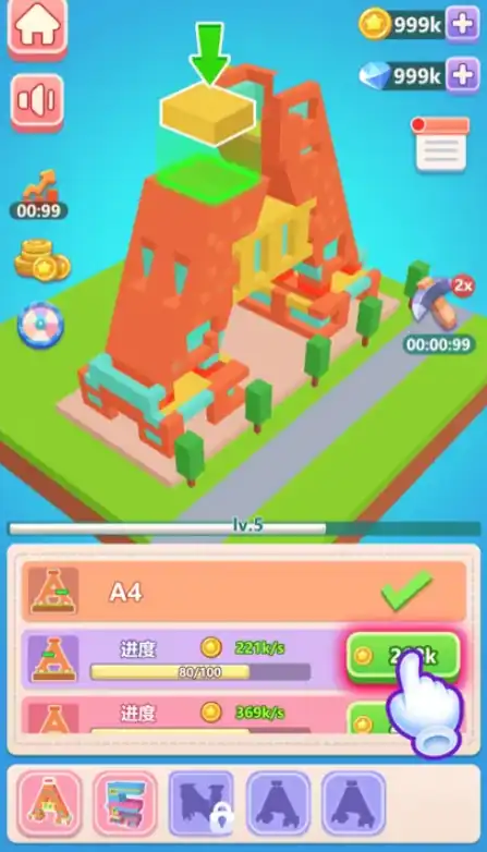 《建筑世界》这款游戏内玩家需要不断的点触屏幕,让建筑物的材料放置在正确的位置,每一次的放置,建筑图纸的制造进度都会提升,在完成了所有图纸进度后,玩家即可进行项目的结算,获取金币钻石奖励。