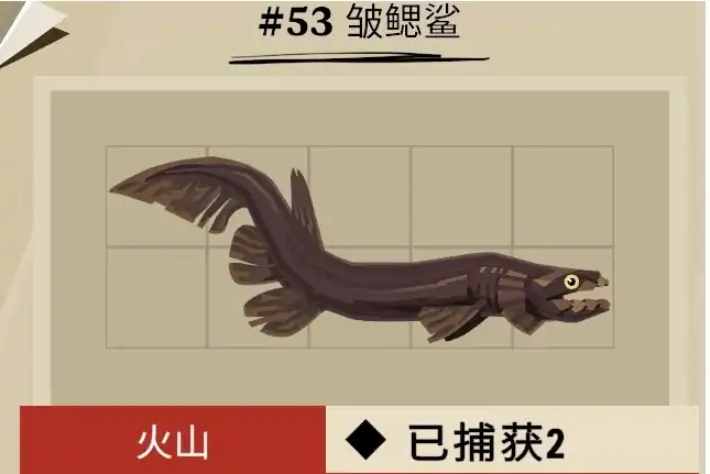 皱腮鲨:这就是最后一种鱼,同样是来到火山区域,在使用对应的工具之后就可以完成捕捞。把这三种鱼找到之后,玩家就可以完成任务,一旦完成任务就能获得航海工程。这是一种道具,玩家如果能够获得这种道具,就能有效减少15%的耐久度降低速度。对玩家而言,确实是一个非常不错的道具。