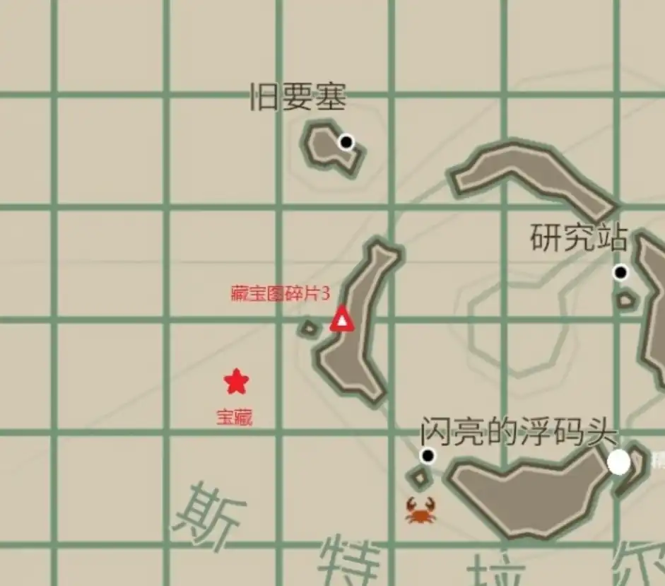 在斯特拉尔湾这个地区,藏宝图的碎片有三片,一片在罗马群岛西南方向的一个小岛,这个位置其实就位于斯特拉尔湾的东北方向,第2片在研究站后面岛屿的一侧,而第3片则在就要在下方的岸边。