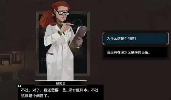 在获得海沟道具之前,我们首先要接受获得深水区样本这个任务,任务发放的npc是实验室的研究元,前往实验室找到正在等你的研究院,和他交谈一下以后,研究院会告诉你他现在正进行深水区的研究,可是却没有样子。