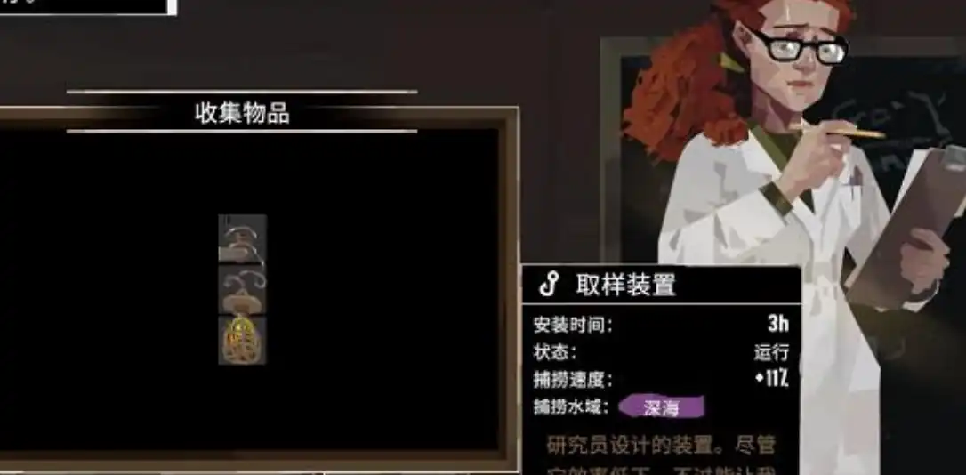 只要把零件交给研究院渔帆暗涌海沟道具就能够解锁了,海沟道具的解锁难度其实并不高,我们只要找到研究院就能够解锁,有了海沟这个道具,我们就能够去深水区帮助研究院获取他需要的样本了,虽然道具效率比较低,可确是我们必须获取得。