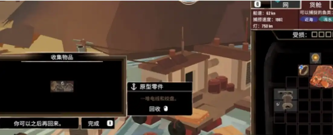 研究院提出让你帮忙去寻找原型零件这个给任务后,我们选择接受,根据任务提示前往研究站找到研究院员需要的原型零件,这些零件就在研究站的实验室里面,需要收集的零件就是一堆电线以及绞盘,点击一下回收就能获得。