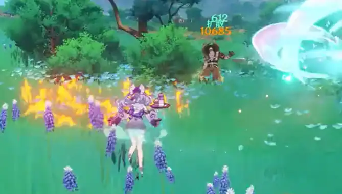 元素战技——秋沙歌枕巡礼,一听这个名字,就能感觉到她带来的不仅仅是风的力量,还有那份让人沉浸的柔和气息。月瑞希通过这项技能,进入“梦浮状态”。在这状态下,她会悬浮在空中,对周围的敌人造成风元素的范围伤害。与此同时,梦浮状态会定时触发,对敌人造成风元素伤害并不断扩散。