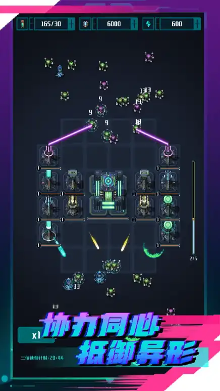 游戏内有上百种不同类型的基建设施可供玩家选择,而玩家需要抵御的异形怪兽,也高达几千种,玩家需要合理地进行区块的搭配,让攻击驿站以及资源储备驿站进行合理的运转, 这样才能够迎接一波又一波的异形入侵。