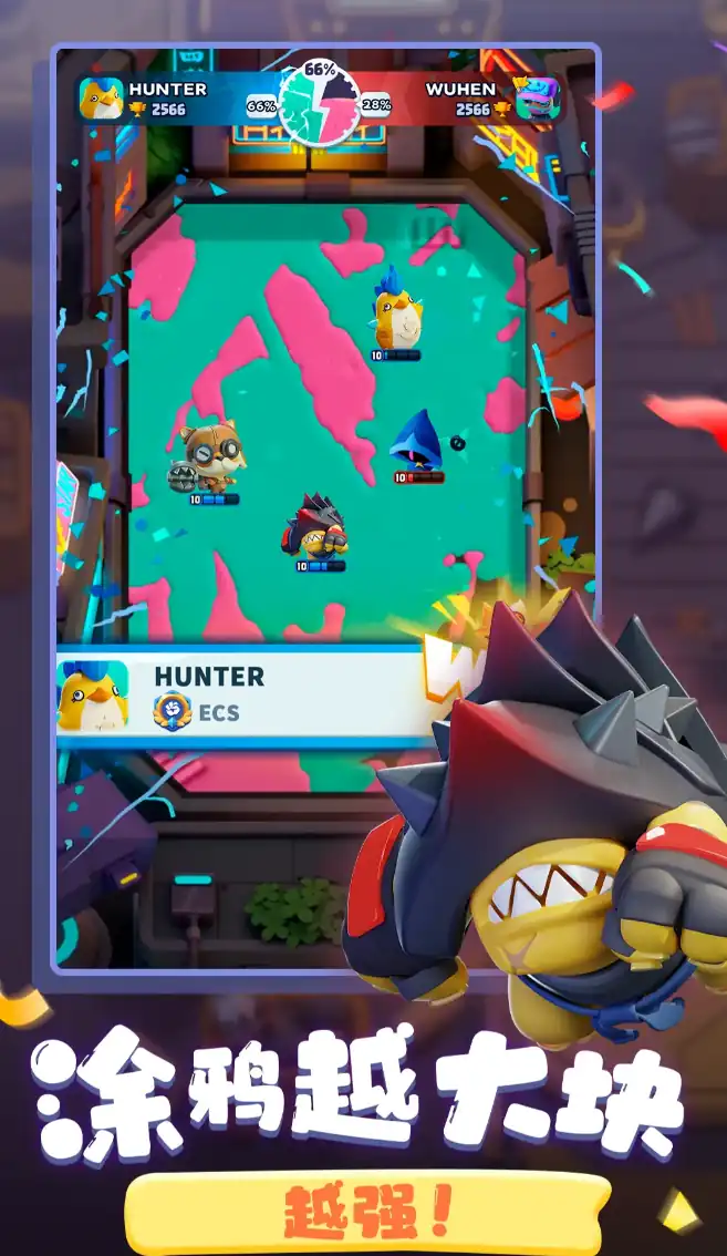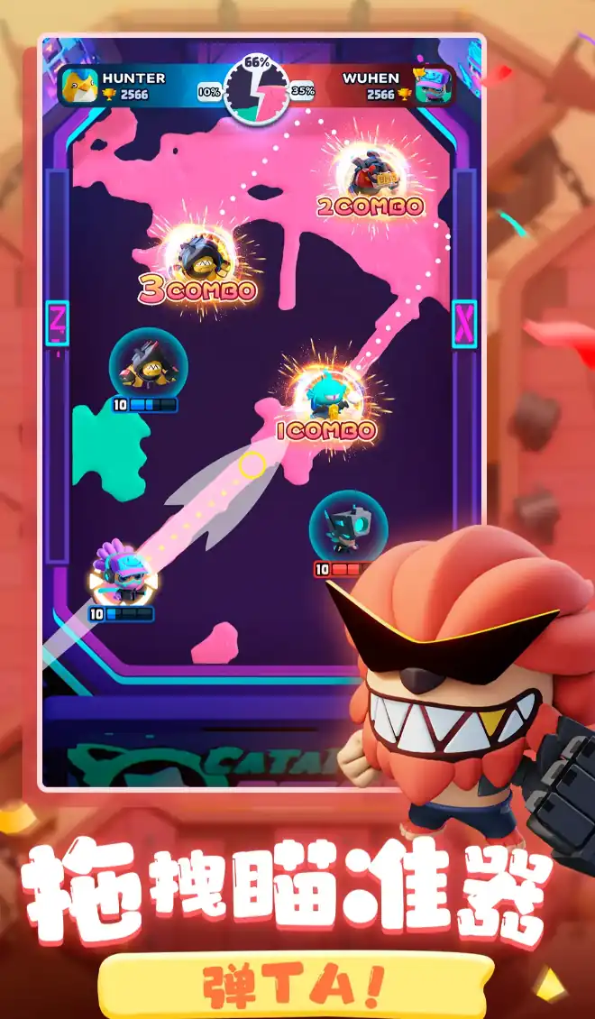 这款游戏节奏非常的快,基本上三五分钟就能够完成一把对局,在每一场对局中,小伙伴们将会带领一支4人小队,在赛场上与其他玩家进行比拼。游戏胜数也是非常简单的,在开局之后,小伙伴们的屏幕上将会出现若干个方块,而你需要做的就是使用这些方块来命中敌人并且获得分数,在对局结束之后获得分数较高的一方则视为胜利。