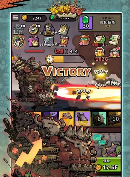 咱们在游戏里面主要是需要驾驶一台巨大的战争堡垒来进行战斗。咱们可以将收集到的各类兽人都放置在这个堡垒里面,因为堡垒的位置有限,所以我们需要将它们的能力进行组合这样才能获取到最大战力。