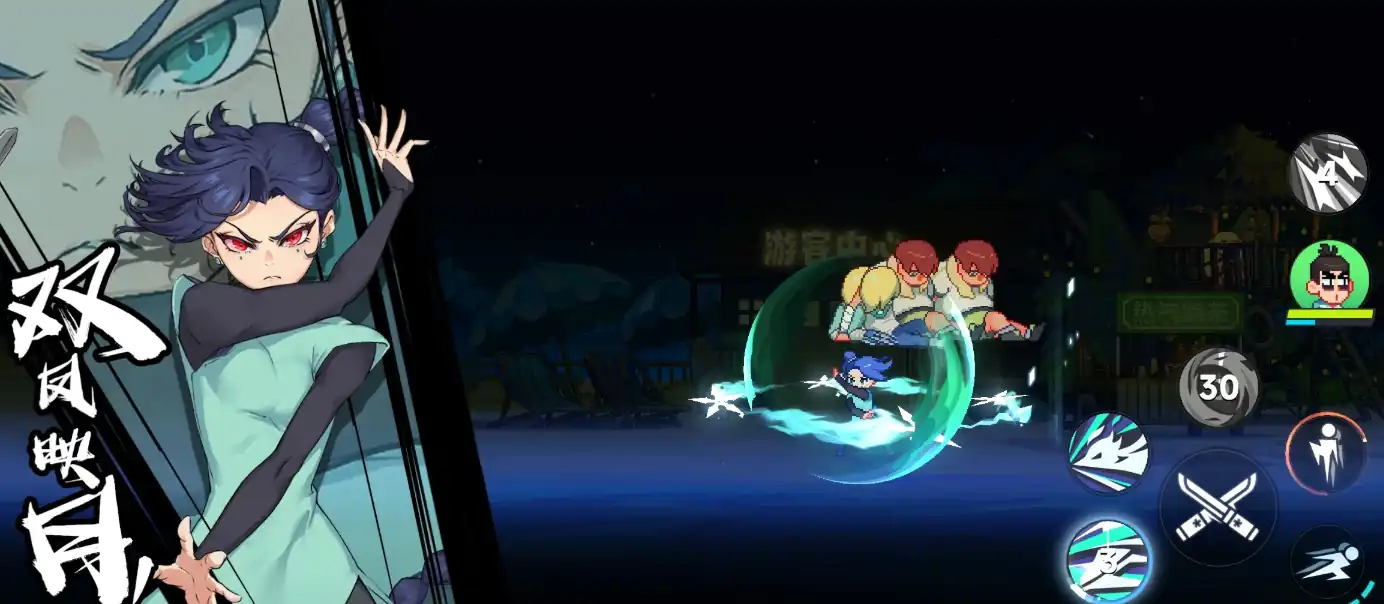 不同于许多漫改手游采用的回合制卡牌类的玩法,伍六七暗影交锋是比较少见的横版像素风动作RPG。Q版画风的像素风格令人眼前一亮。战斗系统是它的核心,多角色转换与高速连击的战斗模式,使得玩家在战斗中能够玩到刀反、格挡、破招等技巧的乐趣。
