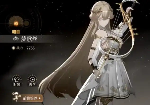 这第一套强势阵容是由萝歌丝、零、铂鸢所组成的,这是一套三日耀的阵容该阵容中萝歌丝为主c、铂鸢为副c零为辅助,其中做为主c的萝歌丝是一位拥有战场输出能力的角色,她在场上时可以随着攻击次数的增加可以叠加光属性的伤害给到敌人附伤效果,伤害值非常的高,可以说只要给足够时间且技术够好的情况下,她是拥有单刷所有boss的能力的。