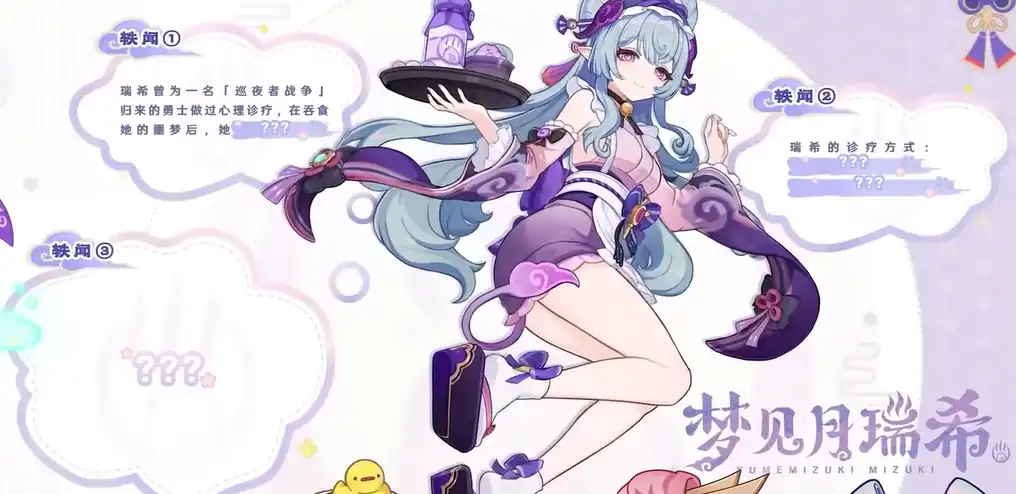 这次5.4版本的亮点之一,毫无疑问就是全新的五星角色——梦见月瑞希。这个来自梦貘一族的心理诊疗师,不仅看起来很神秘,她的能力更是让人眼前一亮。瑞希是一个风元素角色,手持扇子,轻轻一挥就能制造出令人迷醉的风暴。她的技能组合可以让你在战斗中体验到前所未有的策略性。她的元素战技“美梦回忆”会让她进入梦浮状态,这期间她会周期性地对周围敌人造成风元素范围伤害,而且还能增加全队的扩散反应伤害。要是敌人靠近,还会触发梦念冲击波,伤害可不容小觑!