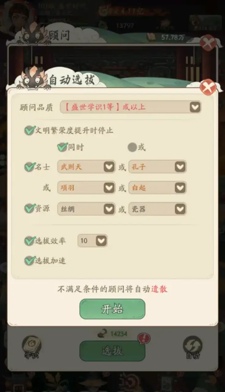 另外名士类的顾问在选择的时候主要是玩家队伍当中的主力名士,这时候还是要根据具体的类型跟特点,选择相对应的属性加成类的顾问。如果玩家真的不知道该如何操作的话,就直接采用游戏当中自动筛选的功能。