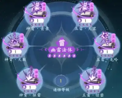 五雷流派的核心神通为五雷·龙吟,搭配天罡、惊垫和虎鸣可以提升法术伤害。