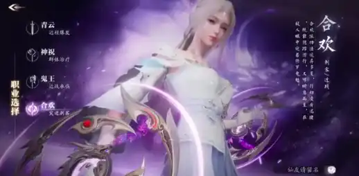 第四个职业是合欢,这个职业相当于刺客能够完成民工,而且技能方面爆发力较为突出,常常可以直接秒掉对手擅长对敌人进行突进,猛的对敌人发起进攻,完成快速收割。不过他在这四个职业当中操控难度是最高的,对于很多策略性极强和比较会抓时机的老玩家来说是不二之选。