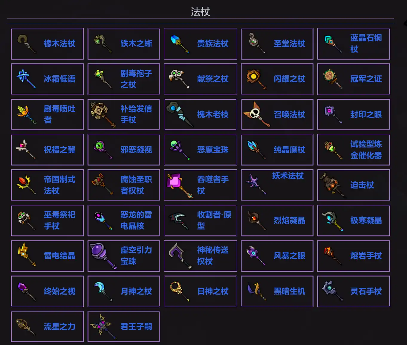 说到法杖这个武器,它比较适合远程攻击和群体控制的玩家。由于法杖的伤害性特别的低,但是玩家利用法杖这个武器的时候可以通过雷电的属性来提高它的伤害输出,其实法杖具备高额魔法攻击和一定的魔法暴击。