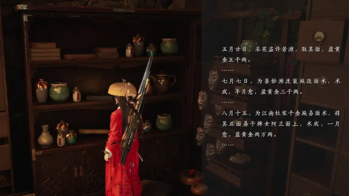 褚清泉在游戏当中也有一个追忆道具,那就是缺月珏,玩家可以将缺月珏交付给天不收或者是寒姨查看,还能够解锁更多的剧情内容,寒姨是游戏当中负责给他人换脸的洛神,玩家在进入到不羡仙地下的地穴之中时,就能够在一个货架上面看到寒姨的个人档案。