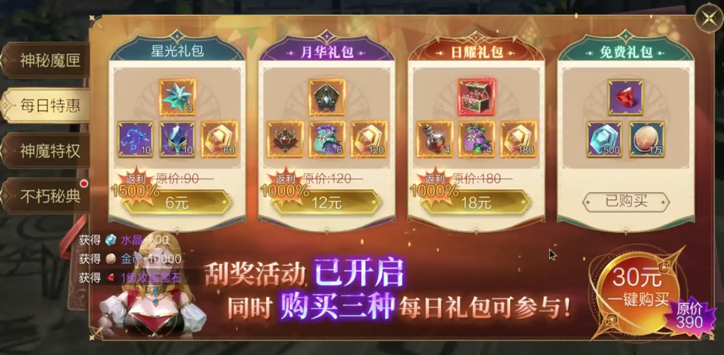 第二个方式是玩家完成活动任务或者是每日任务,通过活动代币积分亦或是每日活跃度来兑换游戏日常商城之中出售的装备道具,这一些道具产出高品质道具的概率是比较高的。