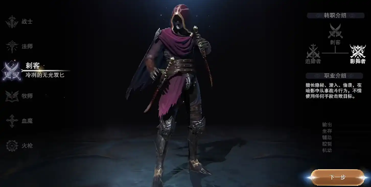 刺客类的职业针对于单体的输出效果,有着极强的转化比,并且刺客类职业的压制能力也是游戏当中最强的,此刻可以通过双刀的流派,对敌人进行长段控制。