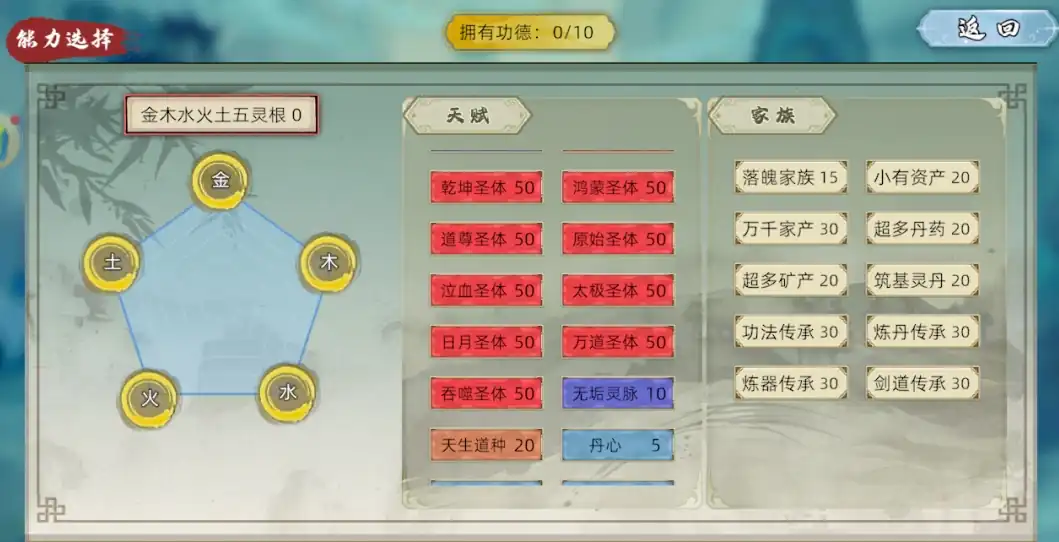 灵根的品质直接影响吸纳灵气的效率,游戏初期,务必甄别家族成员的属性,对于天灵根、地灵根等高品质灵根可以优先培养。使用灵根洗髓丹重置灵根资质,尽量洗出极品灵根,这样在突破时,凭借超强的灵气感知与转化能力,成功率会显著提升。