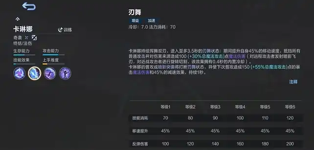 刃舞是卡琳娜的核心技能之一,使用后可以大幅提升她的移动速度,并摧毁所有敌方普通攻击,同时反弹伤害。不仅让卡琳娜在战斗中更加难以被锁定,还能有效地反击敌人的普攻。除此之外,刃舞还会强化卡琳娜的下一次普通攻击,使其伤害更高。