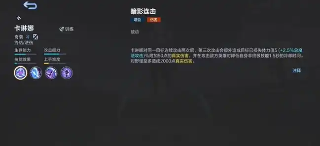 以上就是对决胜巅峰卡琳娜的介绍了,无论是奇袭敌人、打野发育,还是在团战中发挥关键作用,卡琳娜都能展现出她的独特魅力,希望本文对你理解和掌握卡琳娜的玩法有所帮助。