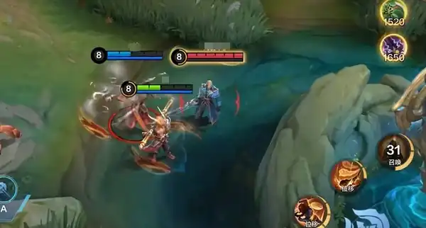 崆的第二技能移花接木则展示了其极高的机动性和迷惑能力,崆在原地留下一个可以攻击敌人的分身后,自身会短暂隐身并随金箍棒向指定方向飞出,对沿途的敌人造成伤害。可以用来快速接近敌人,还能在危机时刻迅速脱离战场,分身的存在则可以让敌人误判崆的位置,从而达到迷惑敌人的效果。