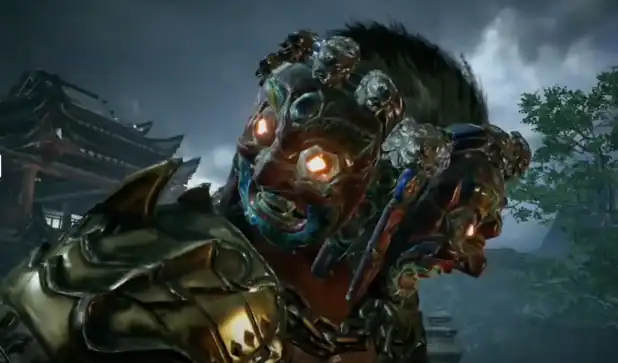 在走出房子之后,眼前是一大片的芦苇地里面就有很多的野生动物。翻过窗口继续的往前走,突然有一股怪风,而且还有一个小boss。这一个小boss就会扔出一个带电的斧头,一旦在靠近之后就会掉血,一定要选择远离。继续往前走之后进入到第2章的大boss巨灵天王面前。先选择远距离去消耗,接着切换成其他的枪。在打掉第一形态之后,第二形态则变得比较简单。